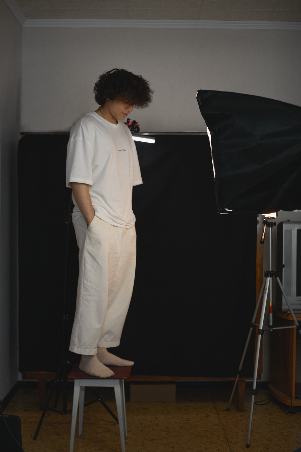 Эту фотографию я сделал у себя в комнате. Изначально планировал другую модель, но в последний момент всё сорвалось. Написал знакомому: «Приезжай сейчас же!» — и через час он уже был тут. Забавно: при разборе кадров я *почти удалил* этот кадр — показался слишком простым. Но потом увидел: → Игра теней на стене, → Историю человека, который примчался по первому зову. Теперь это один из моих любимых кадров. Вывод? Настоящее рождается, когда отпускаешь контроль.
